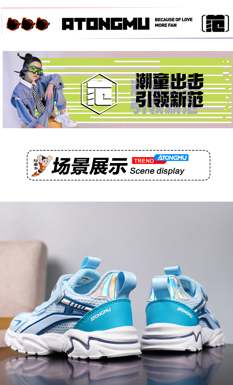 | 商品名稱:阿童木夏季單網(wǎng)透氣兒童運動鞋 |