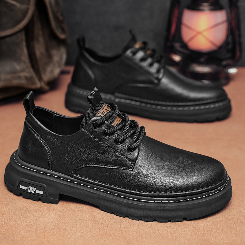 莆田鞋手工休閑皮鞋男春季新款坡跟馬丁鞋時裝潮鞋尋潮人雅痞皮鞋