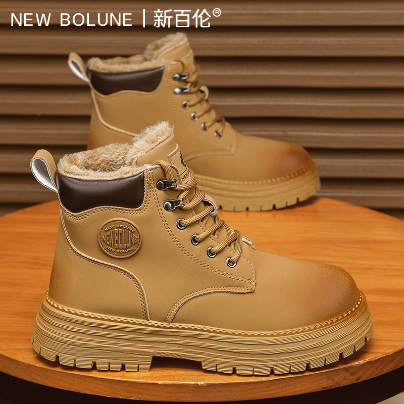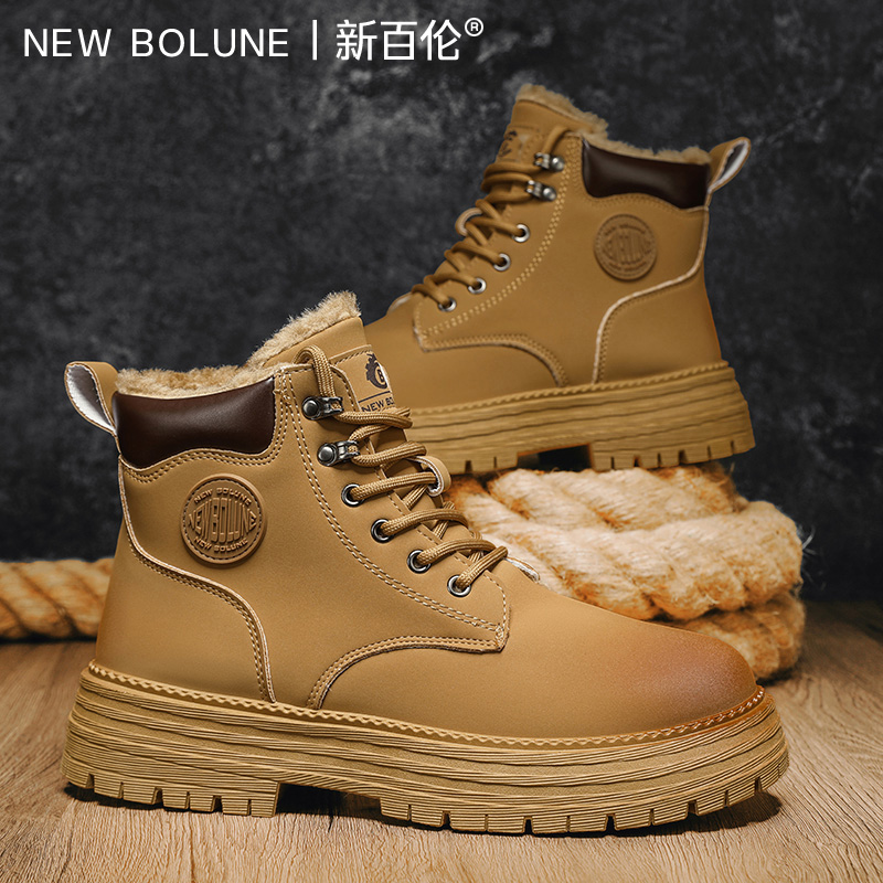 | 商品名稱:新百倫英倫登山馬丁靴情侶秋冬季加絨靴子戶外厚底機(jī)車短靴大黃靴 |