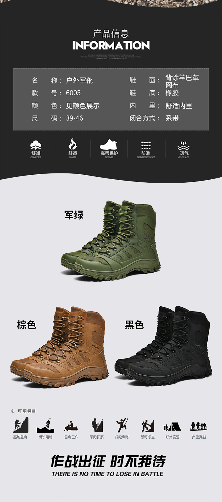 | 商品名稱:跨境專供戶外軍靴野外訓練戰(zhàn)術靴徒步靴男士登山靴 |