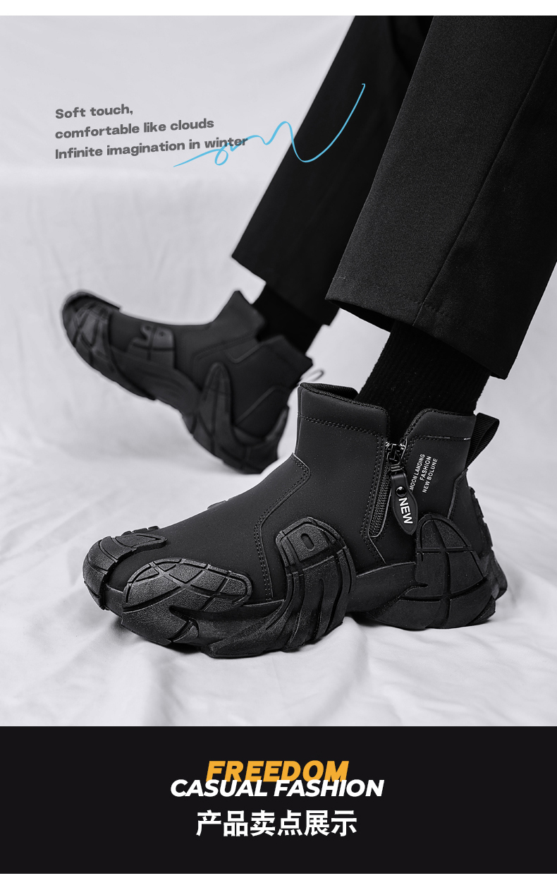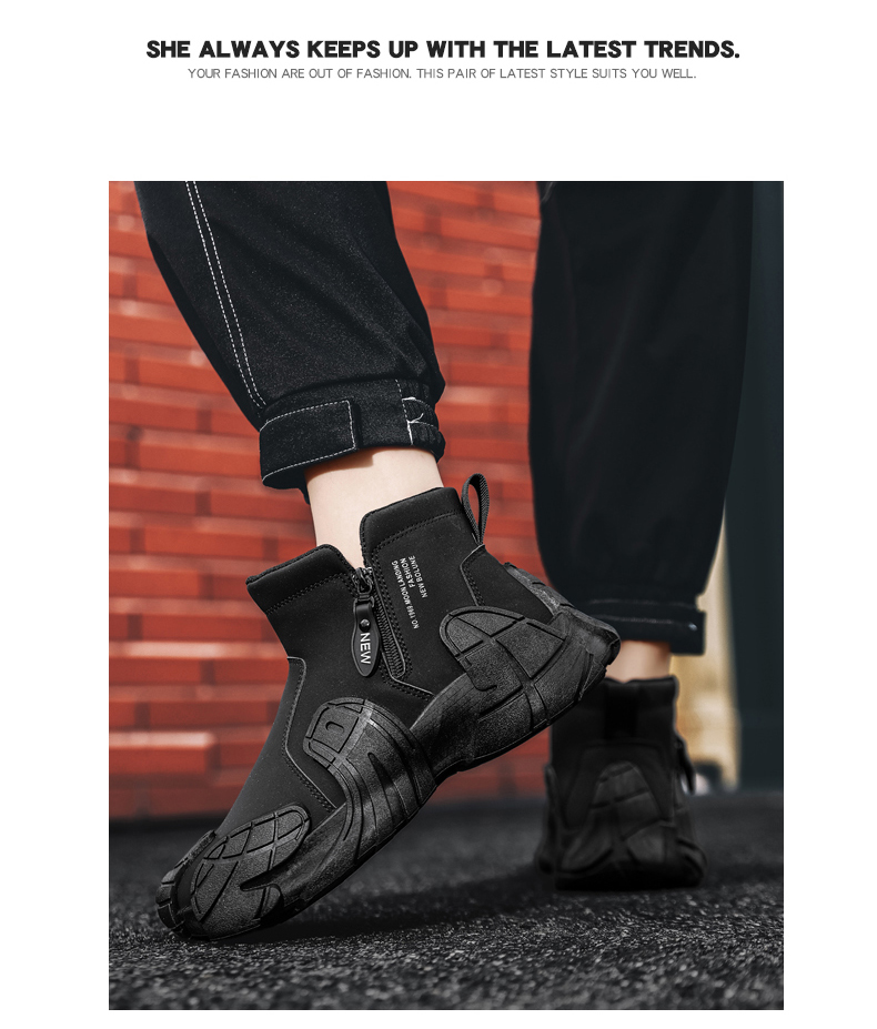 | 商品名稱(chēng):新百倫馬丁靴男鞋春秋高幫防水防滑耐磨一腳蹬黑色工裝休閑工作潮 |