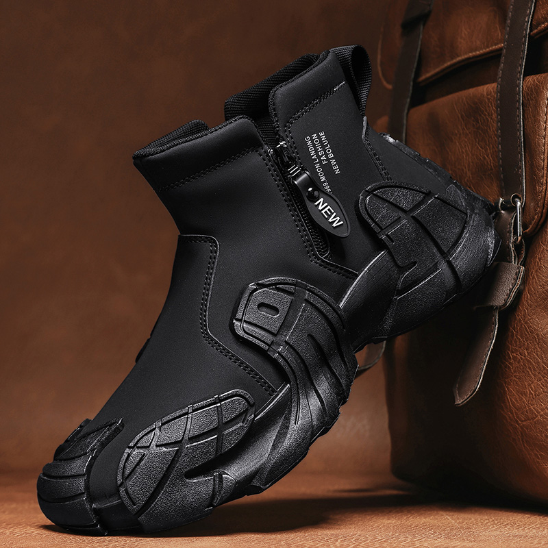 新百倫馬丁靴男鞋春秋高幫防水防滑耐磨一腳蹬黑色工裝休閑工作潮